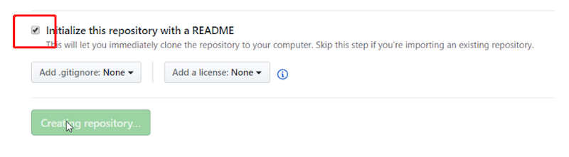 2. Besides, make sure you check the box Initialize this repository with a README. You can leave other options by default.