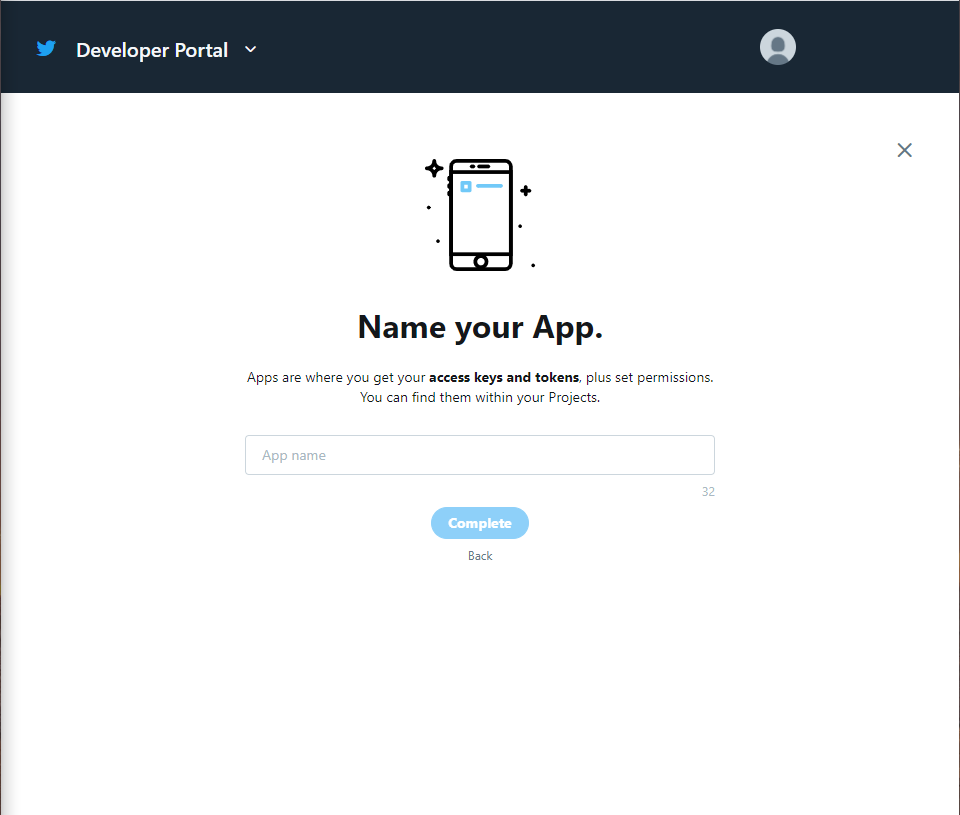 In order to register your account, you will be prompted to answer a series of questions. Please answer those that are required to fill in and you can ignore optional questions. Once you finish registering your account, you can apply for a Twitter app. First of all, you will need to click on Developer Portal which is located on the top right corner of the page.