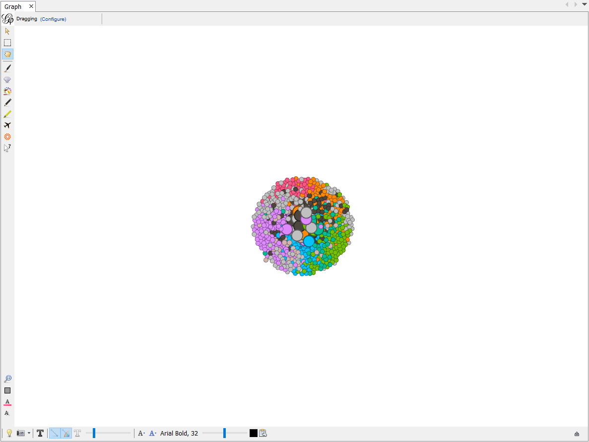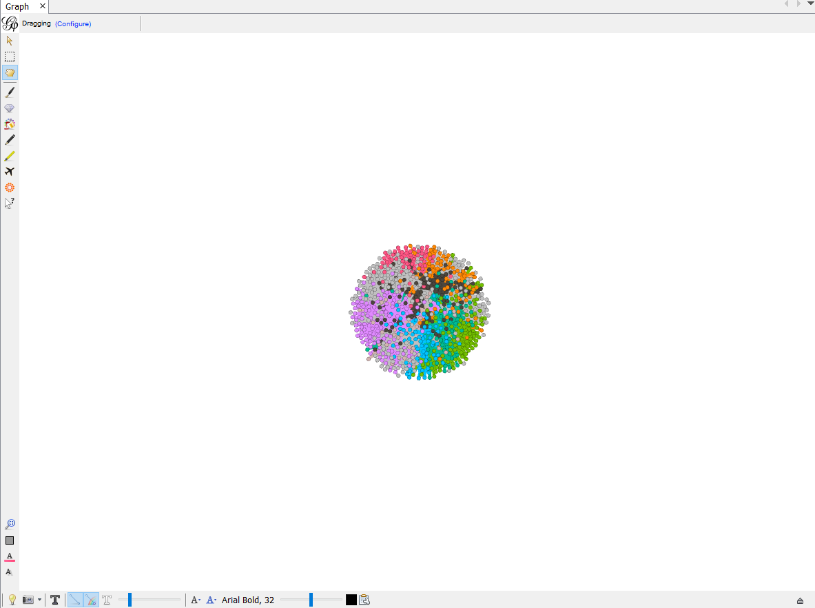 After setting your values for each variable, click Run. You will see each nodes start moving and click stop when they are in good shape and stop moving. your Graph should now look something like this.