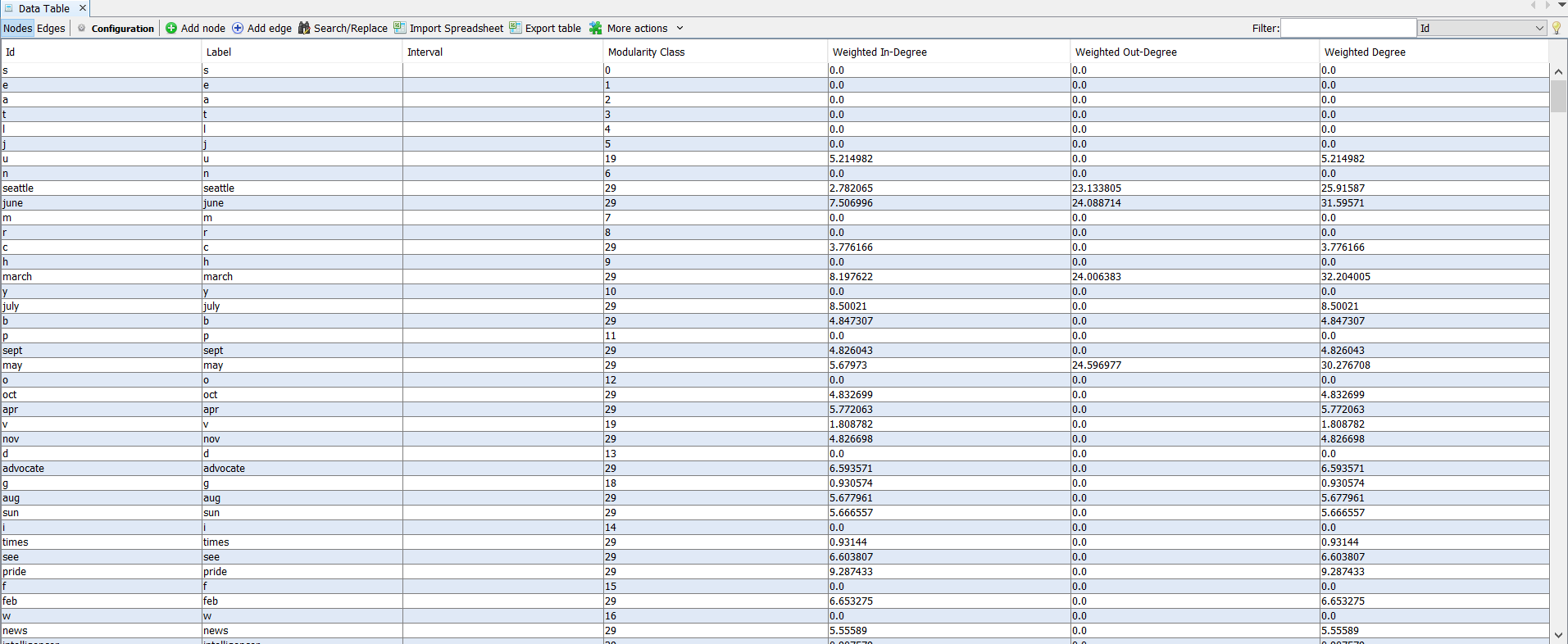 We will save this graphing onject as gexf file, which can be used to graphically generate a social network analysis map.