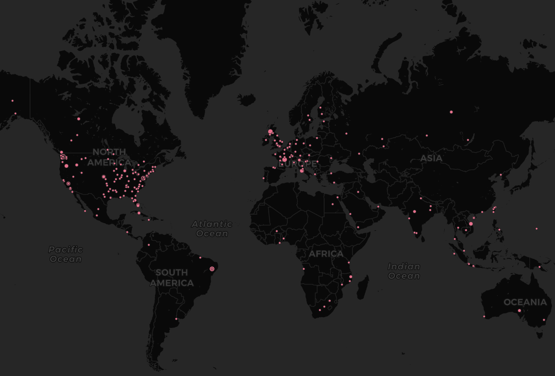 You will notice that the generated map is crowded with points, and we can barely read the graph. Instead of using pyplot to plot these xy-coordinates, we can use a mapping tool called QGIS to map them. If you do not have QGIS installed, here is the link.