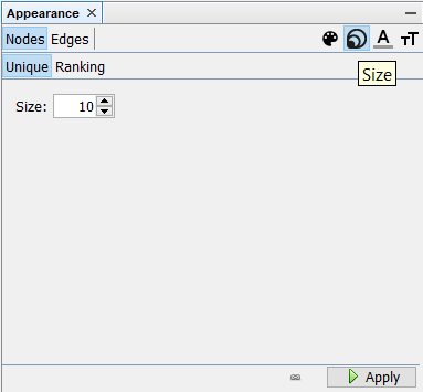 We would also like to change the size of nodes based on how many edges they each have. To do this, click on size tab on top right of the same windon and click Nodes > Ranking > Choose an Attribute > Degree.