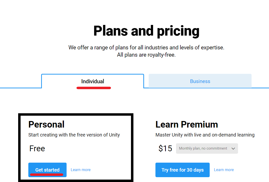 Please select Individual and Personal, then press Get started for downloading)