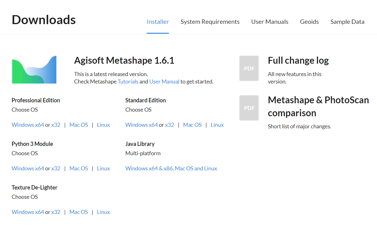 After you successfully have the activate code from Agisoft, you should be able to download your software from this page.