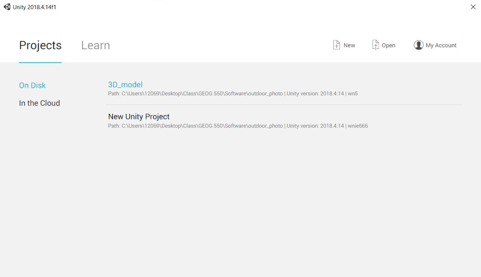Once you open Unity, you will see an graphic interface as below.