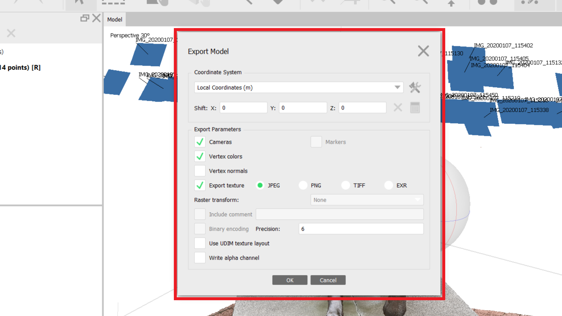 You are welcome to adjust any setting if you want. Shift X, Y, Z coordinate - move or rotate the actual model. The data format of the model could be dae, obj, fbx, and you can export texture in the image as the format of jpeg, png, tiff, and exr.