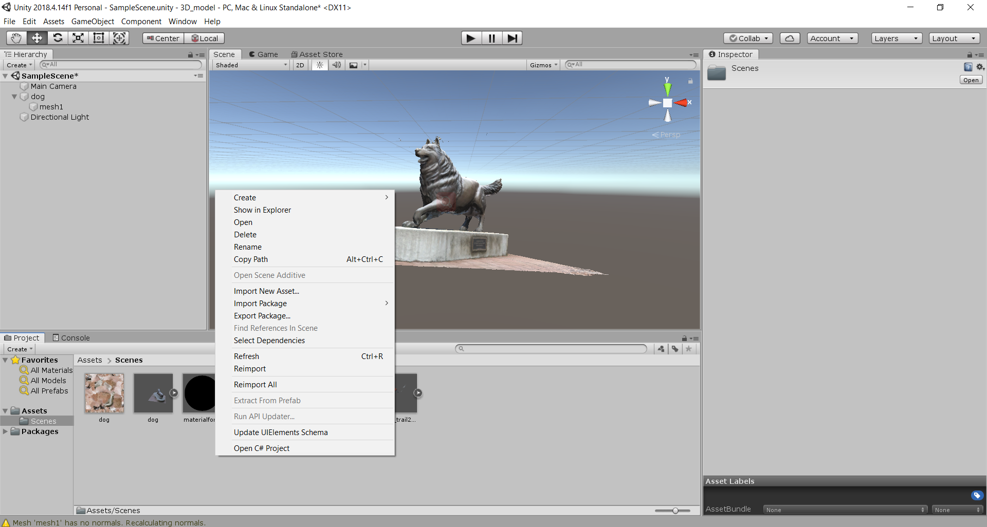 And then export the 3d model to unity, and take (at least three) screenshots too (20 POINTS),